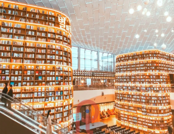 - Thư viện Starfield Gangnam – là một biểu tượng văn hóa, một điểm đến không thể bỏ qua khi ghé thăm Seoul, Hàn Quốc. Với các kệ sách cao 13 mét, là một không gian công cộng mở cửa đón chào bất kỳ ai đến thư viện để ngồi, thư giãn, nghỉ ngơi và đắm chìm trong hàng ngàn cuốn sách đa dạng. Ánh sáng tự nhiên tràn vào từ cửa sổ mái khiến thư viện trông càng hoành tráng hơn ngoài đời thực