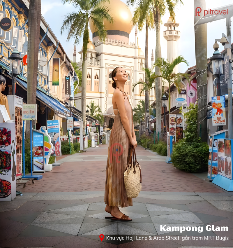 Rời khỏi không gian xanh mát, hãy ghé Kampong Glam, khu phố đậm chất nghệ thuật bậc nhất Singapore. Mỗi góc phố đều có thể trở thành một background hoàn hảo – từ ngõ nhỏ rực rỡ cho đến mặt tường vẽ tay mang đậm dấu ấn cá nhân. Kampong Glam đặc biệt phù hợp với những bạn yêu phong cách street style, boho hoặc muốn ảnh du lịch mang năng lượng tích cực. Một buổi chiều dạo quanh khu này, nhâm nhi cà phê và chụp vài kiểu ngẫu hứng là đã có ngay cả bộ ảnh “đậm chất nghệ thuật” rồi đó.