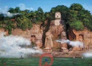 Sau khi dùng bữa, đoàn ngồi thuyền tham quan Lạc Sơn Đại Phật – tượng Phật bằng đá cao nhất thế giới. Bức tượng Phật này được tạc vào vách đá Thê Loan của núi Lăng Vân, nằm ở chỗ hợp lưu của ba con sông. Bên phải bức tượng Phật là là chỗ để du khách dừng chân và chụp ảnh cùng bức tượng. Bên dưới là con đường bên vách núi gọi là “Lăng Vân Sạn Đạo” dài khoảng 45m xuống đến chân Phật, quãng đường này giúp khách tham quan ngắm nhìn tượng Phật rõ hơn.