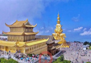 - Nga Mi Kim Đỉnh, điểm cuối cùng và cao nhất của núi Nga Mi – tức Kim đỉnh. Kim đỉnh nằm trên một vùng núi gọi là Vạn Phật Đỉnh gồm có nhiều chùa và thắng cảnh khác nhau. Vào đời nhà Thanh sau khi thi nhân Đàm Chung Nhạc du ngoạn ở núi Nga Mi ông đã hết mực ca ngợi và nêu lên 10 cảnh đẹp chính của núi, nào là Kim Đỉnh Tường Quang, Tượng Trì Nguyệt Dạ, Bạch Thủy Thu Phong v.v... (bao gồm xe du lịch và cáp treo)