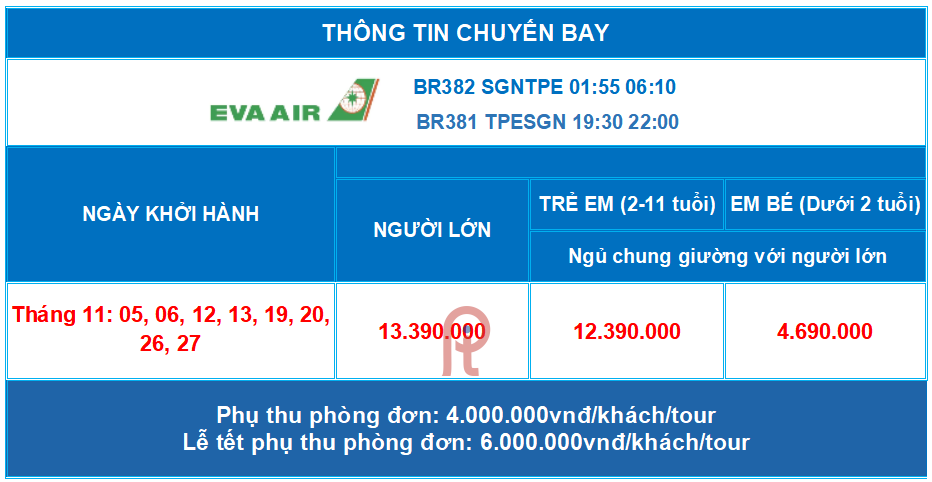 Ngày khởi hành: 05, 06, 12, 13, 19, 20, 26, 27/11/2025