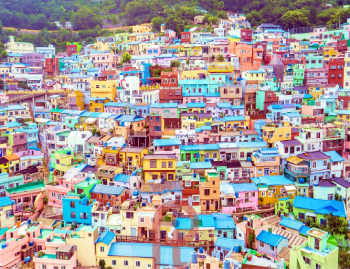 - Làng bích họa Gamcheon Village – từng là một ngôi làng cổ trên đồi, nhìn hướng ra biển với những căn nhà cũ kỹ, xuống cấp. Năm 2009 ngôi làng được những nghệ sĩ phục dựng bằng những sắc màu đầy tính nghệ thuật. Ngôi làng tranh tường bắt đầu được nhiều người biết tới với những khung hình rất riêng, không lẫn đi đâu được. Gamcheon được mệnh danh là Santorini của xứ Kim Chi.