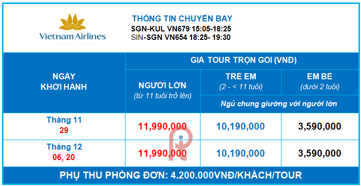 Ngày khởi hành: 29/11; 06/12, 20/12;