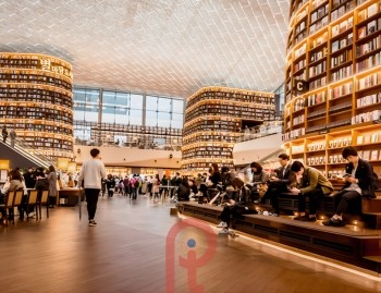 - Thư viện Starfield Gangnam – là một biểu tượng văn hóa, một điểm đến không thể bỏ qua khi ghé thăm Seoul, Hàn Quốc. Với các kệ sách cao 13 mét, là một không gian công cộng mở cửa đón chào bất kỳ ai đến thư viện để ngồi, thư giãn, nghỉ ngơi và đắm chìm trong hàng ngàn cuốn sách đa dạng. Ánh sáng tự nhiên tràn vào từ cửa sổ mái khiến thư viện trông càng hoành tráng hơn ngoài đời thực