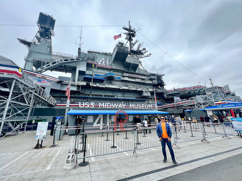 • Tàu sân bay USS Midway– có hải trình phục vụ 47 năm, là mẫu hạm phục vụ lâu nhất của quân đội Mỹ trong thế kỷ 20, từ cuối chiến tranh thế giới lần II cho đến cuộc chiến giải phóng Kuwait 1991, trước khi ” về hưu” vào năm 1992.  (Chụp hình bên ngoài)