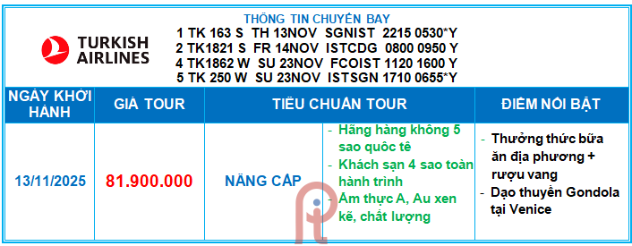 - Vé máy bay khứ hồi hạng phổ thông SAIGON- PARIS // ROME – SAIGON: Turkish Airlines