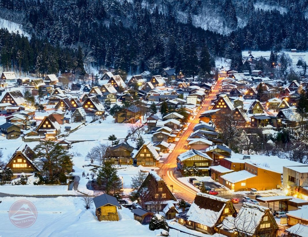 - Làng cổ Shirakawago – ngôi làng nằm nép mình bên rặng núi Hida hùng vĩ ở tỉnh Gifu, Nhật Bản. Đây là một trong những ngôi làng cổ kính nhất được UNESCO công nhận là Di sản Thế giới. Hầu hết những ngôi nhà trong làng được xây theo kiểu kiến trúc Gassho-zukuri truyền thống, với mái nhà dốc, lợp bằng cỏ tranh, nhìn giống như hai bàn tay chặp lại khi cầu nguyện, thiết kế này còn để chống chịu lớp tuyết dày vào mùa đông.