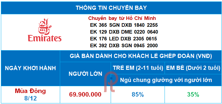 Trải nghiệm hàng không Emirate 5 SAO bay từ 2 miền Việt Nam đến thành phố Moscow hàng ngày;