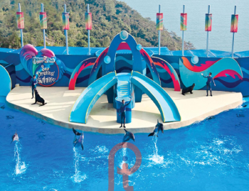 - Công viên giải trí thủy sinh lớn nhất tại Hongkong. Nơi đây sở hữu nhiều công trình giải trí lớn, cũng như là nhà của nhiều loài động vật thủy sinh. Một trong những điểm hấp dẫn nhất tại công viên là đảo san hô vòng có hình dạng như 3 hoặc 4 thủy cung hình elip xếp lại với nhau. Du khách sẽ được ngắm hàng nghìn con cá qua tấm kính dày 6cm. Đảo được chia thành nhiều khu vực để nuôi những loài thủy sinh có môi trường sống khác nhau, trong đó có cá nhiệt đới, bạch tuộc, cá mú, cá chình, rùa biển…được mang về từ các hòn đảo ở Thái Bình Dương và vùng Nam Hải, ngoài ra còn có những rặng san hô đủ sắc màu.