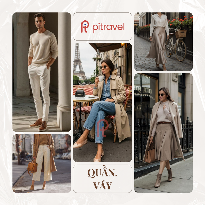 Dù bạn yêu thích sự thoải mái hay phong cách chỉn chu, việc chuẩn bị một vài món cơ bản là điều cần thiết. Jeans luôn là lựa chọn an toàn cho những ngày tham quan dài, dễ kết hợp cùng áo len hoặc sơ mi. Quần tây sẽ là phương án lý tưởng cho những buổi tối cần sự lịch sự và tinh tế hơn. Nếu bạn thích sự đa dạng, có thể mang thêm một chiếc váy hoặc chân váy đơn giản, dễ dàng biến hóa từ phong cách dạo phố ban ngày đến một buổi tối sang trọng.